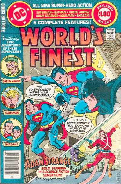 1. The Final Secret of the Super-Sons (Superman, Batman, Superman Jr., Batman Jr., Dr. Sivana / written by Dennis O'Neil : reprinted in: Superman/Batman : Saga of the Super Sons (2007)) 2. Hell's Acre Savior (Green Arrow and Black Canary / written by Bob Haney) 3. Zeta Death (Adam Strange vs. Kastor, with Hawkman / written by Jack C. Harris : continued from: DC Showcase #103) 4. Return to New Venice (Aquaman / written by Bob Rozakis. Aquaman origin story retold 5. The Graybeard Gang (Captain Marvel and Captain Marvel Jr. / written by E. Nelson Bridwell)