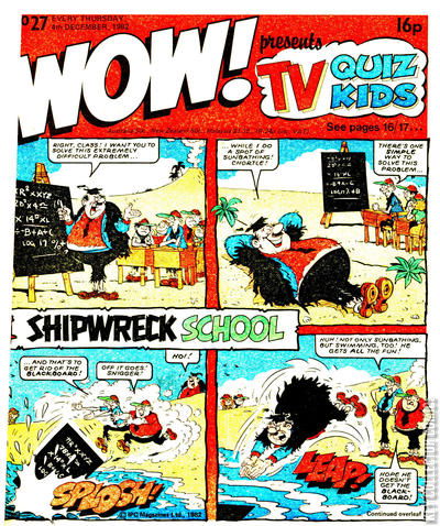 Home / IPC Magazines / Wow! / Wow! #27 IPC Magazines Released January 1982 Wow! #27 Add to Collection Want It Synopsis No synopsis available. Issue 27 of 56 Add to Collection Buy it on eBay Buy on eBay Low $1 Mid $2 High $3 Synopsis No synopsis available. Details Series Wow! Cover Date January 1982 Pages N/A UPC N/A Cover Price N/A Final Order Cutoff N/A Creators No creators listed. Price Guide Log in or subscribe to access detailed graded price information and market insights. Log In Subscribe
