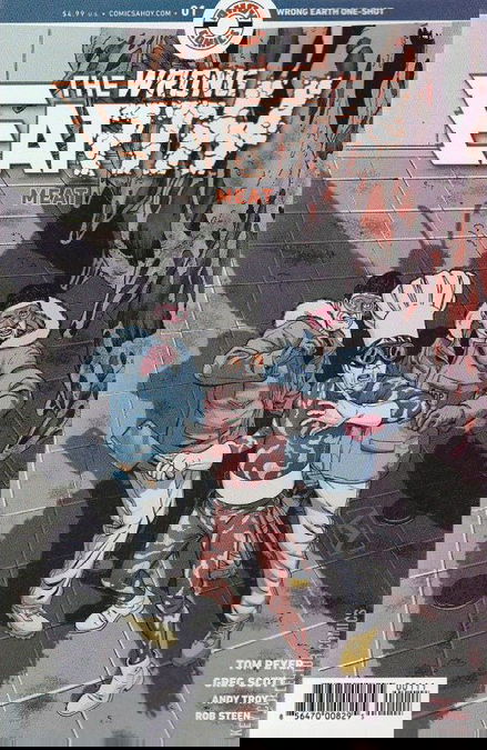 The multi-Earth event concludes in a special written by Wrong Earth co-creator Tom Peyer! On Earth-Alpha, have Dragonflyman and Stinger met their match in Dr. Meat? Can Stinger's nightmare all be a bad dream? Meanwhile, on Earth-Omega, Dragonfly meets someone he can talk to and help out in a time of need - for both of them. All five Wrong Earth specials feature covers by co-creator Jamal Igle and a special incentive cover by legendary artist Gene Ha. This issue also features a second incentive cover by Bill Morrison (The Simpsons).