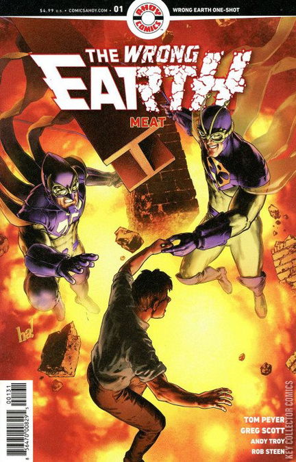 The multi-Earth event concludes in a special written by WRONG EARTH cocreator Tom Peyer! On Earth-Alpha, have Dragonflyman and Stinger met their match in Dr. Meat? Can Stinger's nightmare all be a bad dream? Meanwhile, on Earth-Omega, Dragonfly meets someone he can talk to and help out in a time of need - for both of them. All five WRONG EARTH specials feature covers by co-creator Jamal Igle and a special incentive cover by legendary artist Gene Ha (Top Ten, Mae). This issue also features a second incentive cover by Bill Morrison (The Simpsons).