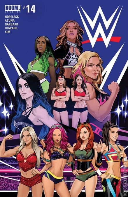THOUGH SHE BE BUT LITTLE, SHE IS FIERCE!, PART 1 The top-secret story behind Charlotte Flair, Sasha Banks, Becky Lynch, and Bayley kicking off the Women's Evolution that changed the WWE Universe forever begins in this issue! Plus, don't miss the first chapter of a four-part backup story from Tini Howard (Mighty Morphin Power Rangers: Pink) and Hyeonjin Kim (Sisters of Sorrow) chronicling the rise of WWE Superstar Asuka!