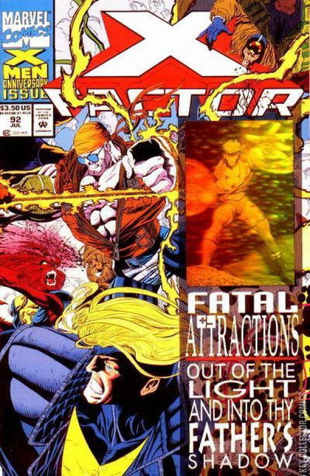 "The Man Who Wasn't There (Fatal Attractions, Pt. 1)" When the Acolytes of Magneto begin slaughtering humans indiscriminately it's up to X-Factor to stop them. Story continues in X-Force #25. NOTE: This issue has a hologram card of Havok on the front cover.