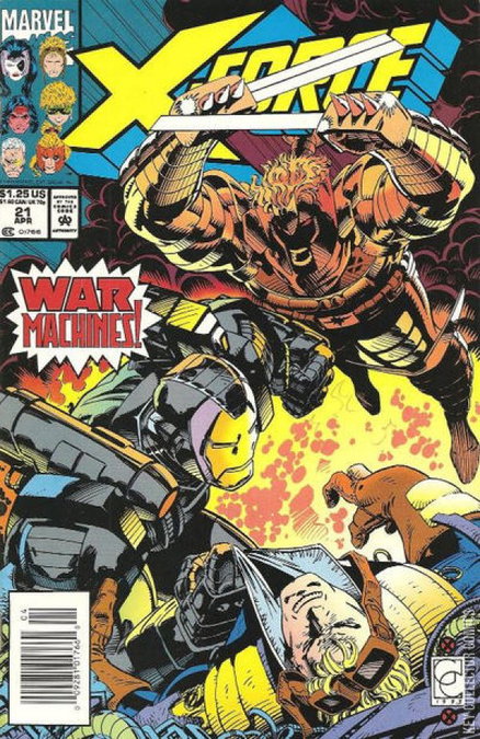 War Machines, script by Fabian Nicieza, pencils by Greg Capullo, inks by Harry Candelario; Graymalkin is destroyed in the battle between X-Force and Shield; appearances by Nick Fury and War Machine.