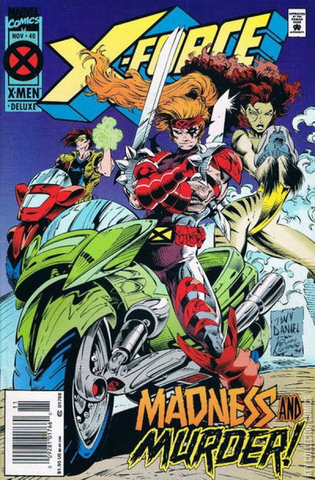 Lucia Callasantos (Thornn) is hunted down by New York's finest for the murder of her family. Declaring innocence, she turns to X-Force to help prove that it was her sister Maria (Feral) who actually committed the murders. They lure Feral to the old home of the Callasantos family in hopes of finally getting some answers.SynopsisDetective José Hidalgo has tracked murder suspect Lucia Callasantos [the mutant called Thornn] into the Morlock Tunnels, accompanied by the NYPD's superhuman task force "Code: Blue". She attacks them, fighting bravely, but she is outnumbered... shot with a tranquiliser dart, she protests her innocence--"I didn' kill my family!! SHE did!!"... As Code: Blue takes her away, Hidalgo is troubled--it seems he knew Thornn in happier times, and her mysterious accusation has a meaning for him...Meanwhile, Domino is showing X-Force their new HQ, formerly Arcade's "Murderworld"--Cannonball is not impressed, but a good case is made and he comes around to the idea. Boomer gets goofy... Domino is rude to Boomer, sotto voce... Rictor is rude to Shatterstar amiably... Boomer drapes herself on Cannonball's arm... Cable is off somewhere... general conviviality.In the Bronx a mob gathers, led by the anti-mutant group "Friends of Humanity"; they want to know the identity of the suspected murderer. As Hidalgo questions Thornn it comes out that these two knew each other as children, before Thornn's mutation, and her mother, brother and sister's murders. In fact--he loved her. He tries to speak to her about all of this, but she doesn't feel like talking. She asks for her phonecall, but Hidalgo doubts whether any lawyer in the city will be able to save her...Outside, the mob is getting ugly... Graydon Creed [founder of the Friends of Humanity] is pleased... Thornn's name and picture are released, leaving no doubt that she is a mutant... Feral overhears this on a TV in a shop window. In Westchester the Beast asks Professor X if the X-Men should get involved--he says...