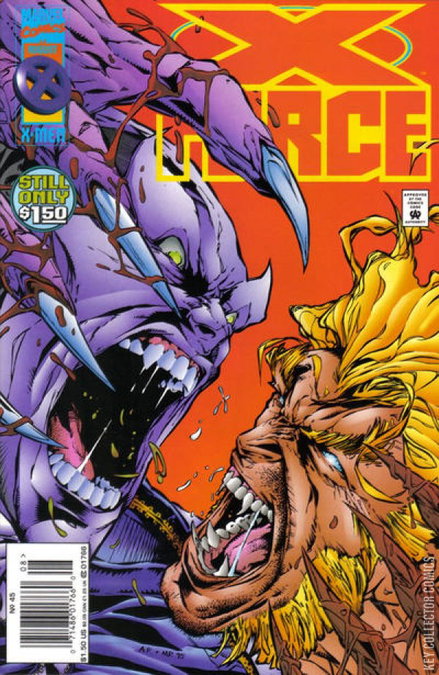 With X-Force in the X-Mansion, it doesn't take too long for Caliban to attack Sabretooth. Before the death-blow can be struck against the newly docile bad guy, Cable shows up and diffuses the situation. Boomer is chastised when it's found that she's been seeing Sabretooth regularly. Later, Beast has found some oddities with Shatterstar and conducts further tests while Cable and the rest of the boys head to Siberia to find out what happened to one of Xavier's underground outposts. The Mimic happened.