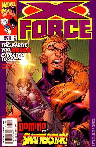 The members of X-Force, along with Sam Guthrie, continue to enjoy their down-time at a bowling alley in West Nathan, Texas. Their games come to an end, however, when Tabitha Smith uses her mutant power of creating minor explosive charges to liven things up, eliciting scowls from the other alley patrons. As they depart, Roberto Dacosta and Tabitha quietly discuss how to handle their possible attraction to each other, and whether or not to tell Sam, Tabitha's boyfriend, that she and Roberto shared a kiss. Meanwhile, aboard an empty oil tanker in the Gulf of Mexico, the de-powered Domino fights a series of battles against super-powered opponents. Her purpose is two-fold: to earn position as bodyguard for international crime-lord Etienne Rousseau, and more importantly to her, to prove to herself she still has what it takes to survive in her world of intrigue. Domino defeats her latest opponent, Snakeskin, and before long, Arcade, the organizer of the competition, introduces her next foe: Shatterstar. 'Star expresses his regrets to Domino, but he is forced by Arcade to fight her in order to save his friend, Julio Richter, from the assassin's deathtrap. Julio is captive in a cell surrounded by globes filled with nitroglycerin, preventing him from using his powers as Rictor to free himself. The fight commences, and although Shatterstar inflicts a few flesh wounds, Domino perseveres and emerges triumphant, knocking 'Star out. Arcade and Rousseau enter, and Domino decapitates Arcade with one of Shatterstar's swords. This Arcade is revealed to be merely a robot. When Rousseau offers Dom the bodyguard position, however, she takes him into custody, fulfilling her true assignment, the crime-lord's arrest. As Shatterstar recovers, Arcade watches the events on screen, accompanied by Mojo, who reiterates his claim of owning 'Star. Back in Texas, most of the gang prepares to make a food run, with Roberto and Tabitha staying behind in their motel room. Thinking...