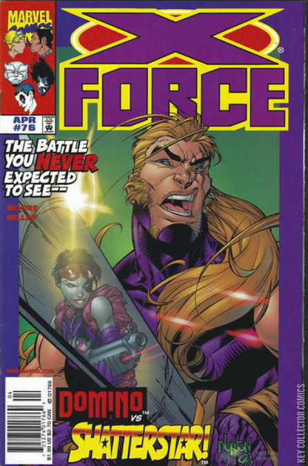The members of X-Force, along with Sam Guthrie, continue to enjoy their down-time at a bowling alley in West Nathan, Texas. Their games come to an end, however, when Tabitha Smith uses her mutant power of creating minor explosive charges to liven things up, eliciting scowls from the other alley patrons. As they depart, Roberto Dacosta and Tabitha quietly discuss how to handle their possible attraction to each other, and whether or not to tell Sam, Tabitha's boyfriend, that she and Roberto shared a kiss. Meanwhile, aboard an empty oil tanker in the Gulf of Mexico, the de-powered Domino fights a series of battles against super-powered opponents. Her purpose is two-fold: to earn position as bodyguard for international crime-lord Etienne Rousseau, and more importantly to her, to prove to herself she still has what it takes to survive in her world of intrigue. Domino defeats her latest opponent, Snakeskin, and before long, Arcade, the organizer of the competition, introduces her next foe: Shatterstar. 'Star expresses his regrets to Domino, but he is forced by Arcade to fight her in order to save his friend, Julio Richter, from the assassin's deathtrap. Julio is captive in a cell surrounded by globes filled with nitroglycerin, preventing him from using his powers as Rictor to free himself. The fight commences, and although Shatterstar inflicts a few flesh wounds, Domino perseveres and emerges triumphant, knocking 'Star out. Arcade and Rousseau enter, and Domino decapitates Arcade with one of Shatterstar's swords. This Arcade is revealed to be merely a robot. When Rousseau offers Dom the bodyguard position, however, she takes him into custody, fulfilling her true assignment, the crime-lord's arrest. As Shatterstar recovers, Arcade watches the events on screen, accompanied by Mojo, who reiterates his claim of owning 'Star. Back in Texas, most of the gang prepares to make a food run, with Roberto and Tabitha staying behind in their motel room. Thinking...