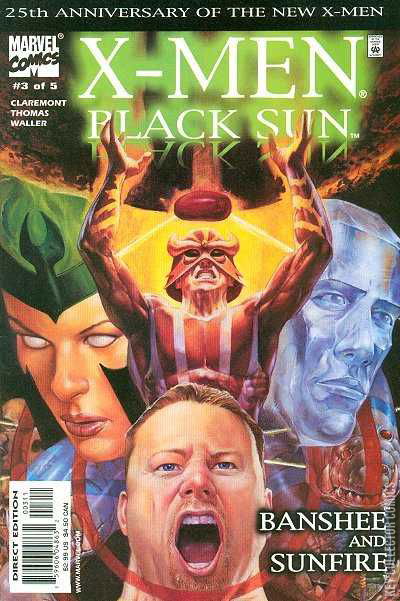 THE SCOOP: Part three of the X-Men's 25th Anniversary Event! THE STORY: Wolverine, Iceman, Banshee and Sunfire storm Genosha! What new surprises await them in the island nation now ruled by their greatest enemy, Magneto? Will Banshee and Sunfire be able to stop Polaris and Iceman before they too are transformed by Belasco? And how will Polaris react to her former teammates invading her newfound home? It's civil war...X-Men style! THE FORMAT: 32 pages, with ads.