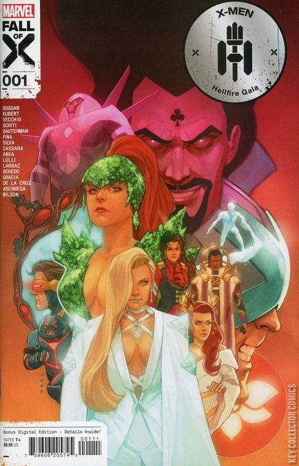 THE FALL OF X BEGINS HERE! The Hellfire Gala is always the biggest event of the season�but this year's will change everything for Krakoa. What is meant to be mutantkind's biggest night becomes their biggest nightmare as the Fall of X begins! All your favorite X-Men are going to be left reeling after this one - shocking revelations, stunning betrayals, horrifying tragedy, impossible deaths�and of course the most glamorous looks of the year, all in one CANNOT-MISS package! Rated T+