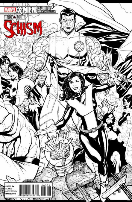 "Schism (Part Three)" The events of Schism #1 have launched the world into turmoil, and the all-new Hellfire Club is ready to take advantage of the chaos. But when the survival of the mutant race is on the line, just how far will the X-Men go? Once a line is crossed, there's no going back. The event that promises to tear the X-Men apart at their very core continues, by writer and Marvel Architect Jason Aaron, and superstar artist Daniel Acuña (WOLVERINE, AVENGERS)!