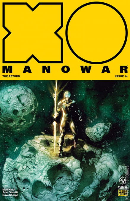 THE MOMENT MORE THAN A YEAR IN THE MAKING! AT LAST – X-O MANOWAR RETURNS TO EARTH! After a brutal year spent waging war on the far side of the galaxy, Aric of Dacia must now face the one thing he yearned to leave behind: planet Earth. But as the man called X-O Manowar prepares for a world-shaking homecoming, he must come to terms with a savage awakening inside himself…and the obligations that still await him on our world. Just as the forces of HARBINGER WARS 2 – Valiant’s seismic 2018 crossover event – begin to vie for Aric’s loyalties, a long-awaited reunion might just shatter everything we’ve come to believe about the fallen warrior-king in control of the universe’s most powerful weapon… The comics odyssey of a lifetime comes full circle as New York Times best-selling writer Matt Kindt (ETERNITY) and acclaimed artist Ariel Olivetti (Incredible Hulk) begin the countdown to HARBINGER WARS 2 with an inescapable turning point for the Valiant Universe’s unrelenting man of war!