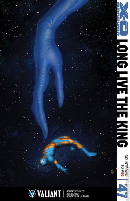 ALL-NEW ARC! ALL-NEW JUMPING-ON POINT! The march toward the greatest Valiant milestone of all time starts here as X-O Manowar begins "LONG LIVE THE KING"! They are The Torment - and their name means death. Thought to be a legend by the extraterrestrial empire called the Vine, they have now become Earth's violent reality. They have traveled for eons to reach us...in search of Aric of Dacia, the unstoppable X-O Manowar. How can Aric of Dacia defeat an omnipotent threat nearly as old as the universe itself? Will the X-O Manowar armor truly be our world's salvation, just as the Vine's myths foretold? Is this the beginning of the end for X-O Manowar...or the beginning of something bigger? Plus: The X-O MANOWAR #50 COUNTDOWN GIVEAWAY begins here! Each issue of "LONG LIVE THE KING" comes bagged with one of 50 exclusive micro-prints from comics' leading talents...or full-blown ORIGINAL ARTWORK!