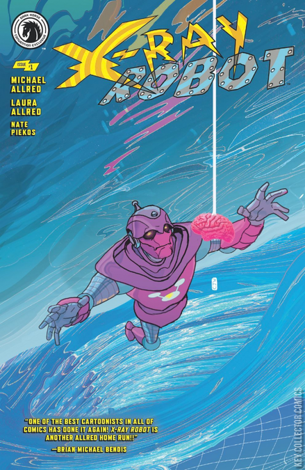 Max is a family man seeking a more interesting life. While conducting a new experiment at work, the fabric of his reality is torn before his eyes, and a robotic figure appears, claiming to be his 277-year-old self. The robot is able to “X-Ray” multiple dimensions and battles a nihilistic entity from another dimension who wants to take all life to its “Pre-Big Bang” status. Max and the robot embark on an interdimensional roadtrip through past and future to take down the “Nihilist” and save the universe! - Mike Allred’s new bizarre superhero character X-Ray Robot!