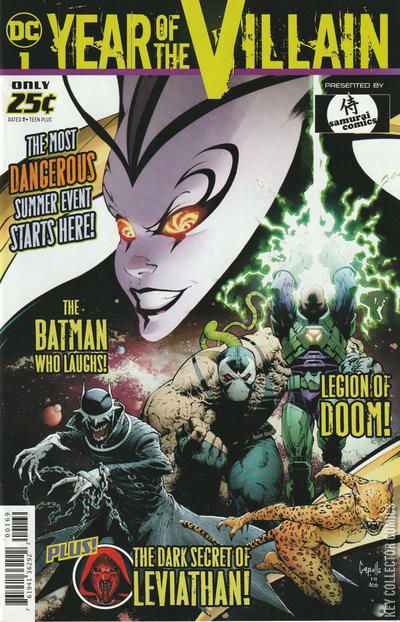 Evil is winning! Lex Luthor and The Legion of Doom conspire with Cosmic Gods, bending mankind toward a dark destiny. Elsewhere, the scourge of Leviathan spreads unchecked, seizing power in every corner of the world. And all the while the Batman Who Laughs busies himself in the shadows, aligned with no one—yet with sinister plans for all. The carnage starts here as the bad guys take center stage in “The Year of the Villain,” the most treacherous event in DC Comics history. Some act with united goals, others with plans selfish and secret, every one of them on a monstrous collision course against Batman, Superman, and the heroes of the DC Universe. And our heroes will fail us. Don’t miss the start of “The Year of the Villain,” featuring the talents of writers Brian Michael Bendis, Scott Snyder, and James Tynion IV, artists Jim Cheung, Alex Maleev, and Francis Manapul, and cover artist Greg Capullo—all for just $0.25!