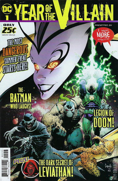 Evil is winning! Lex Luthor and The Legion of Doom conspire with Cosmic Gods, bending mankind toward a dark destiny. Elsewhere, the scourge of Leviathan spreads unchecked, seizing power in every corner of the world. And all the while the Batman Who Laughs busies himself in the shadows, aligned with no one—yet with sinister plans for all. The carnage starts here as the bad guys take center stage in “The Year of the Villain,” the most treacherous event in DC Comics history. Some act with united goals, others with plans selfish and secret, every one of them on a monstrous collision course against Batman, Superman, and the heroes of the DC Universe. And our heroes will fail us. Don’t miss the start of “The Year of the Villain,” featuring the talents of writers Brian Michael Bendis, Scott Snyder, and James Tynion IV, artists Jim Cheung, Alex Maleev, and Francis Manapul, and cover artist Greg Capullo—all for just $0.25!