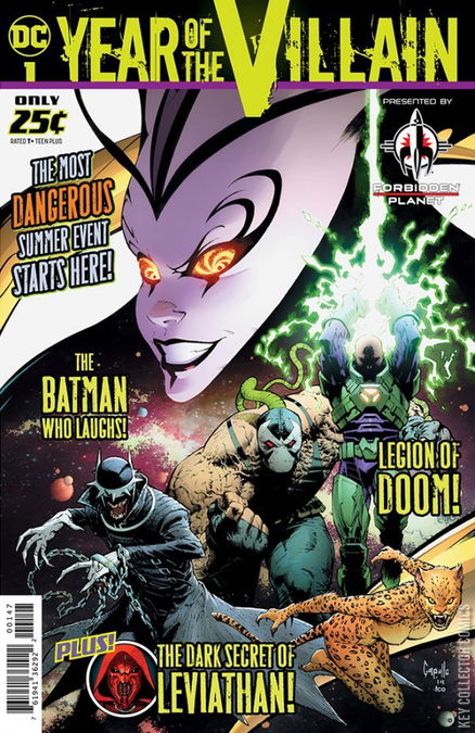 Evil is winning! Lex Luthor and The Legion of Doom conspire with Cosmic Gods, bending mankind toward a dark destiny. Elsewhere, the scourge of Leviathan spreads unchecked, seizing power in every corner of the world. And all the while the Batman Who Laughs busies himself in the shadows, aligned with no one—yet with sinister plans for all. The carnage starts here as the bad guys take center stage in “The Year of the Villain,” the most treacherous event in DC Comics history. Some act with united goals, others with plans selfish and secret, every one of them on a monstrous collision course against Batman, Superman, and the heroes of the DC Universe. And our heroes will fail us. Don’t miss the start of “The Year of the Villain,” featuring the talents of writers Brian Michael Bendis, Scott Snyder, and James Tynion IV, artists Jim Cheung, Alex Maleev, and Francis Manapul, and cover artist Greg Capullo—all for just $0.25!
