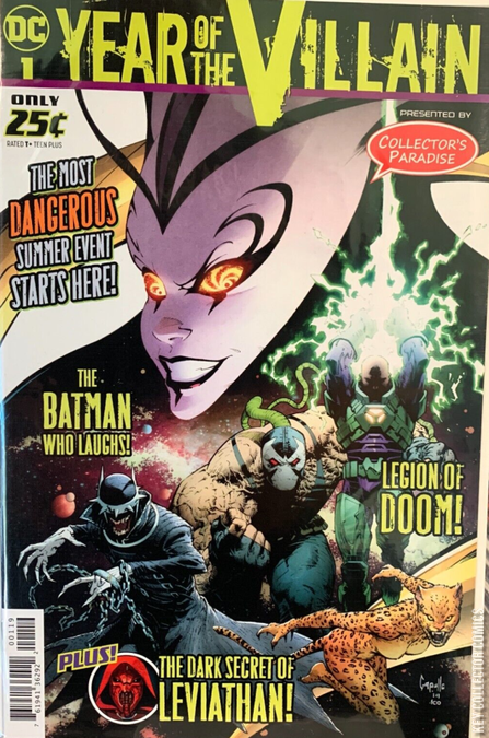 Evil is winning! Lex Luthor and The Legion of Doom conspire with Cosmic Gods, bending mankind toward a dark destiny. Elsewhere, the scourge of Leviathan spreads unchecked, seizing power in every corner of the world. And all the while the Batman Who Laughs busies himself in the shadows, aligned with no oneyet with sinister plans for all. The carnage starts here as the bad guys take center stage in The Year of the Villain, the most treacherous event in DC Comics history. Some act with united goals, others with plans selfish and secret, every one of them on a monstrous collision course against Batman, Superman, and the heroes of the DC Universe. And our heroes will fail us. Dont miss the start of The Year of the Villain, featuring the talents of writers Brian Michael Bendis, Scott Snyder, and James Tynion IV, artists Jim Cheung, Alex Maleev, and Francis Manapul, and cover artist Greg Capulloall for just $0.25!