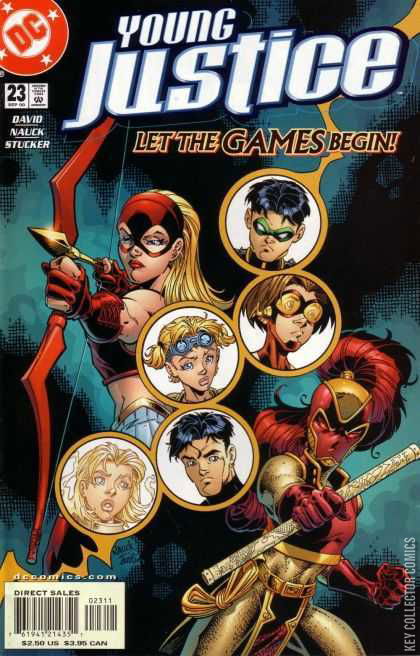 Part 1 of the 2-part "Australia Games" storyline! The Young Justice gang goes down under to support Cissie, the former Arrowette, as she and the U.S. archery team compete in the Australia Games. But the games take an interesting turn as Monsieur Mallah and The Brain lead a Zandian team of villains into competition. And you know, they don't play fair! Plus, more of the Empress mystery revealed!