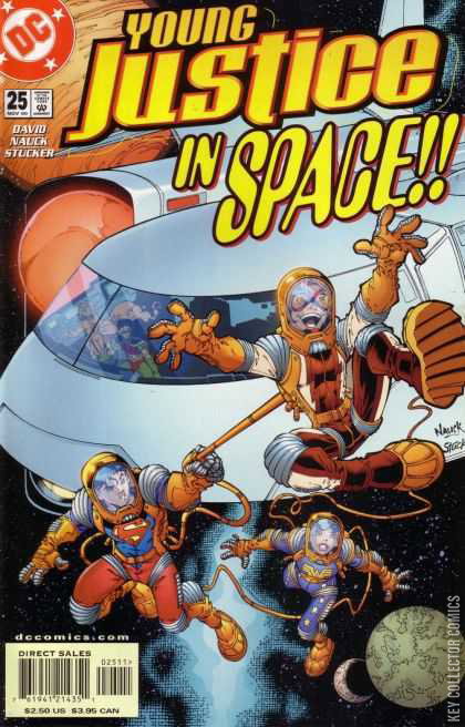 Beginning the team's 3-part journey into space! What will happen to Impulse's brain without air? Is Lil' Lobo now a part of YJ? In space, can you hear Robin scream? Find out the answers to these questions and more as our heroes head to the planet Myr to save a world and free a princess!