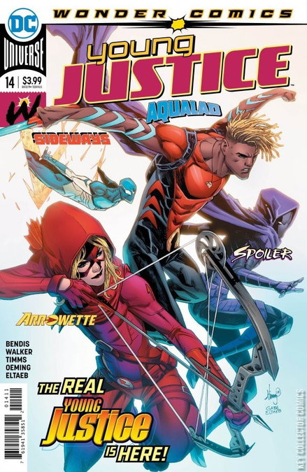 - 1st team appearance of Young Justice II: Sideways, Aqualad, Arrowette, Spoiler