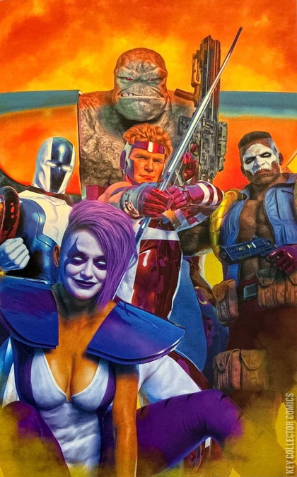 Introducing the next generation of super-heroes...meet Youngblood. This explosive first issue features two teams and two exciting adventures. First Shaft, Die Hard, Bedrock, Vogue, and Chapel must confront the nefarious Four. Then, Sentinel leads Riptide, Brahma, Photon, Psi-Fire, and Cougar into a Middle-Eastern country to put an end to an evil dictator's rule. Brought to you by the co-creator of Cable from the New Mutants and X-Force. 50/50 split with Riptide cover. Flip-book. Two trading cards (they vary per copy of issue?) are bound into the comic.