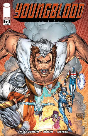 It's been twenty years in the making, but YOUNGBLOOD reaches its 75th issue with an oversized story! And who can blame them?! In this issue Jeff Terrell returns to the team, Cougar realizes that as impossible as it seems, he might actually be in love. We get one more clue as to the fate of Badrock, and Die Hard and Vogue discover there is more "there" there than they every suspected. All this and a battle worthy of the world's greatest superhero team!