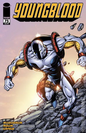 It's been twenty years in the making, but YOUNGBLOOD reaches its 75th issue with an oversized story! And who can blame them?! In this issue Jeff Terrell returns to the team, Cougar realizes that as impossible as it seems, he might actually be in love. We get one more clue as to the fate of Badrock, and Die Hard and Vogue discover there is more "there" there than they every suspected. All this and a battle worthy of the world's greatest superhero team!