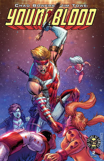 “YOUNGBLOOD REBORN,” Part Two The ‘Blood is back, baby! But for how long? Shaft arrives in Baltimore with a warning for the team of rookie heroes calling themselves “Youngblood,” but will it fall on deaf ears? Meanwhile, President Die Hard meets with the architects of the popular Help! app and struggles with just how far he’s willing to go to protect the country. All this, plus Badrock keeping secrets? Seriously, Badrock...already? What the hell, dude, it’s only the second issue?