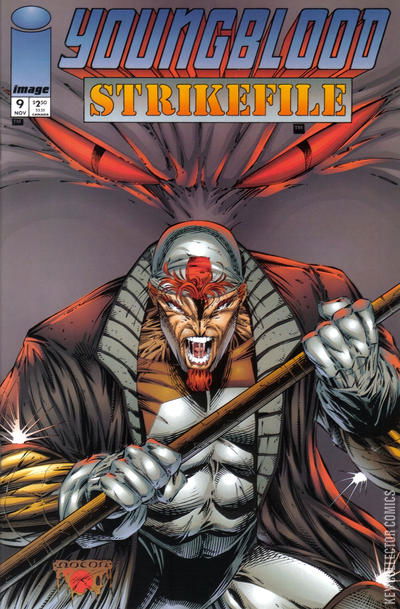 "Battle Royale, Part 1," A Vegas Casino owner calls in Youngblood to take care of a violent guest who has overstayed his welcome; Knightsabre takes it upon himself to tackle War Wolf solo. "King of the Cats!", Cougar meets Slink, the king of the cats. Shaft illustration,