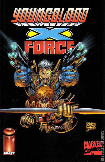 The Image/Marvel cross-overs continue as Youngblood and X-Force unite! Madcap Mojo returns to stake his claim on Image Earth in the name of higher ratings and a really big piece of the market share pie! Featuring cameo appearances by dozens of characters from both the Image and Marvel Universes, this high octane first meeting between Youngblood and X-Force promises to be a non-stop rollercoaster ride leading directly into the X-Force/Youngblood crossover shipping next month from Marvel!