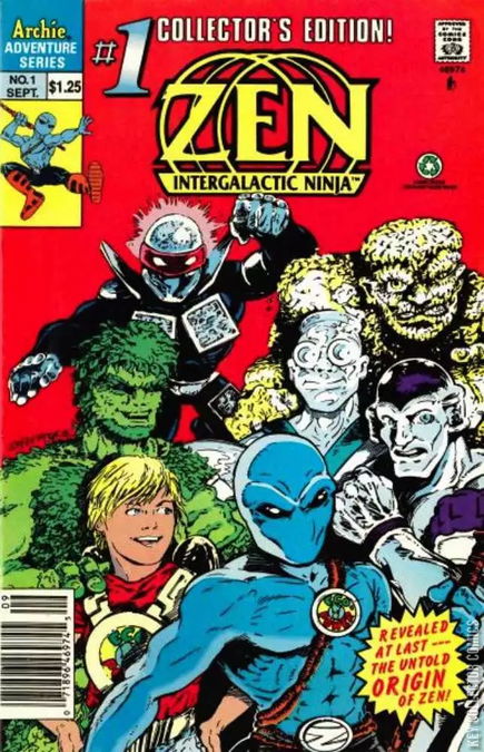 Story by Steve Stern. Art by Ross Andru, Mike Esposito and Will Cypser. Cover by Jared K. Fletcher. Archie Comics presents Steve Sterns sci-fi hero as a kid-friendly eco-warrior, featuring art by Silver Age legends Ross Andru and Mike Esposito. Zen gathers the Recycled Heroes to save the Amazon rainforest from Lord Contaminous and his Contaminants. Also, revealed at last: the origin of Zen. This was the final series of Silver Age legend Ross Andru. 36 pages, Full Color.
