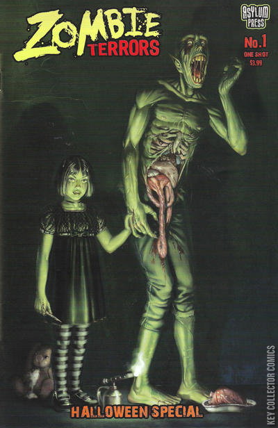 Asylum Press brings you a giant flesh rotting collection of all-new zombie tales, featuring an international cast of artistic talent. Dwayne Harris brings us "Recluse" where an old man living in a cabin in the woods thinks he's prepared for the zombie apocalypse, but nothing could prepare him for the bite of a recluse spider turning him into a creature of the undead. Timothy E. Bacon delivers "Zombie Panic" - in a post nuclear future, a man tries to evade a horde of the Walking Dead. But they may not be as dead as they seem. "Abomination Dead" is written and Illustrated by Frank Forte. Brain Quinn writes and draws a zombie tale of feudal Japan entitled "Kowai." An amazing horrorific collection for the Halloween reader!