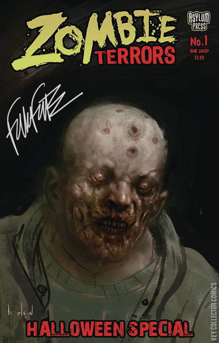 Asylum Press brings you a giant flesh rotting collection of all-new zombie tales, featuring an international cast of artistic talent. Dwayne Harris brings us "Recluse" where an old man living in a cabin in the woods thinks he's prepared for the zombie apocalypse, but nothing could prepare him for the bite of a recluse spider turning him into a creature of the undead. Timothy E. Bacon delivers "Zombie Panic" - in a post nuclear future, a man tries to evade a horde of the Walking Dead. But they may not be as dead as they seem. "Abomination Dead" is written and Illustrated by Frank Forte. Brain Quinn writes and draws a zombie tale of feudal Japan entitled "Kowai." An amazing horrorific collection for the Halloween reader!