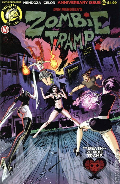 It's the 4 year anniversary celebration, and the Death of Zombie Tramp event is in full swing with a battle royale featuring Black Betty, Dollface, Vampblade, and more! This epic extra-length 50th issue spectacular changes everything! Features 3 regular and risqu? variants, including two covers from series creator Dan Mendoza (DollFace)!
