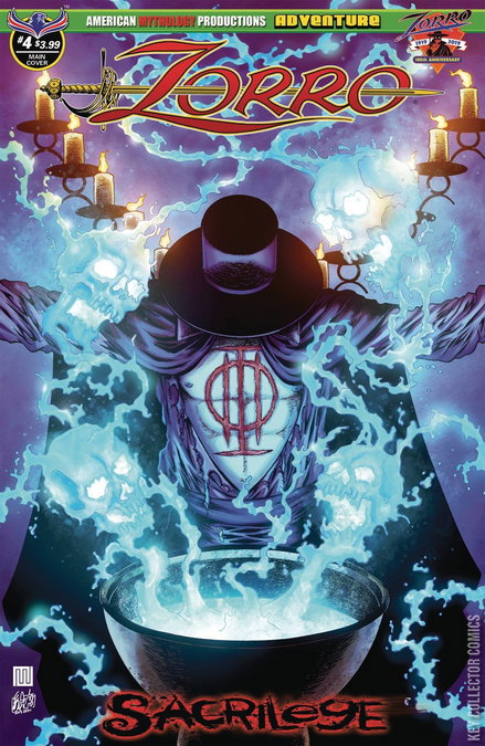 The explosive conclusion to ZORRO: SACRILEGE is here! Faced with the prospect of either exorcising the possessed inhabitants of the town or killing them all to free their souls, Zorro must sacrifice everything to destroy the evil once and for all! This is blazing supernatural action like you have never seen before as a legendary hero must face the very legions of Hell! ZORRO: SACRILEGE #4 comes with three covers: Main and Variant by Mike Wolfer, and a 350-copy Limited Edition B&W 'Visions of Zorro' cover, also by Wolfer.